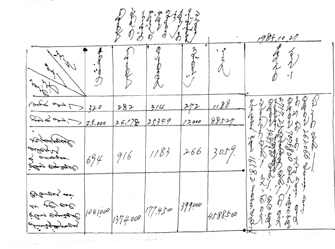 原满都宝力格苏木党委书记扎那提供的1985年满都草场分配数据:
