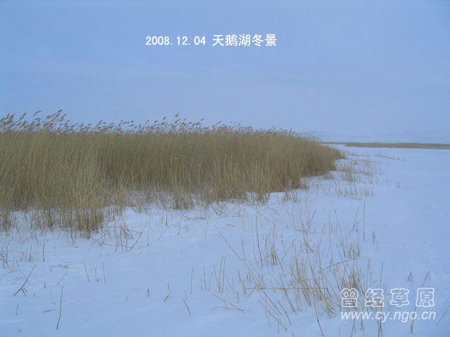 在满都牧民的帮助下,我们坐着牧民的四轮驱动皮卡,一路挖雪到了乃林高勒离天鹅湖大约300米的地方,车实在走不动了,我们徒步走到湖边,穿过芦苇走上连底冻的湖面上拍了照片。