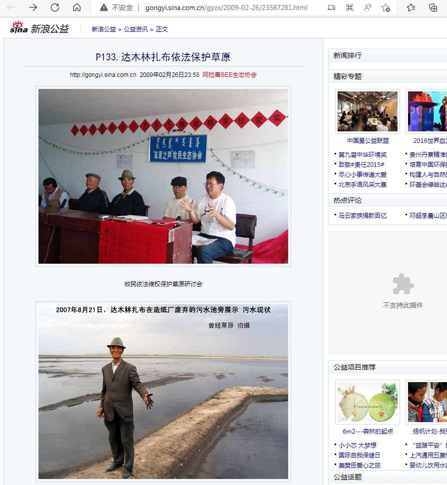 曾经草原网站获首届《SEE 生态奖项滋根奖》 |