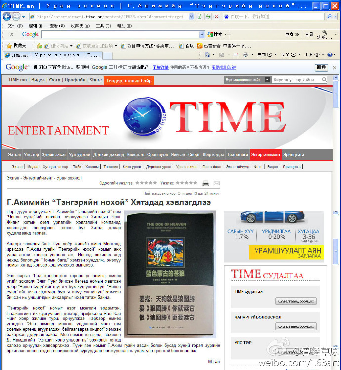 本书由姜戎作序,姚克成翻译。 蒙古国媒体报道了出版消息: