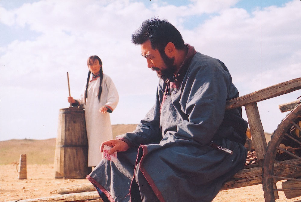 不用说著名女演员娜仁花的表演分寸严谨(她只是忘了在卖酸奶时把车卸了让牛歇息),导演兼男主角的宁才,络腮胡子虎背熊腰,在银幕上传达了一种牧人的亲切。他们踏着满地沙砺的咔喳的靴子声,如今日沙漠草原上,苦涩的牧人的心跳。 电影的题目叫做《季风中的马》,但蒙文旁译却是《Qak-un sarel》。这个蒙语词组一下子抓住了我。它译回来很难:sarel是一种白马的颜色,它不能使用“白”(qagan),因为后者纯白如同理想。而qak则是时间、时光之意。这个题目起得好——它隐喻了一种文明、一个民族在狂暴的时光变移之中的姿态和立场。一匹驳杂的白马挺立时间之中,系着我们的情感,如我们自己的象征。同时,喀喇沁出身的大胡子那可儿也有个好名字,宁才的原文是“能赛”,nengsayin,“更好”,如牧人朴实的希冀。这个片名引我久久地遐想。有一个汉语词叫做“白驹过隙”,它强调的是时光的迅疾无常。牧人的思路有所不同,他们渴望的是——白驹在时光中的永恒。
