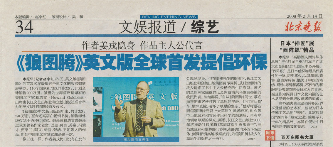 | 2007年 | 媒体对《狼图腾》获亚洲文学大奖的报道 |